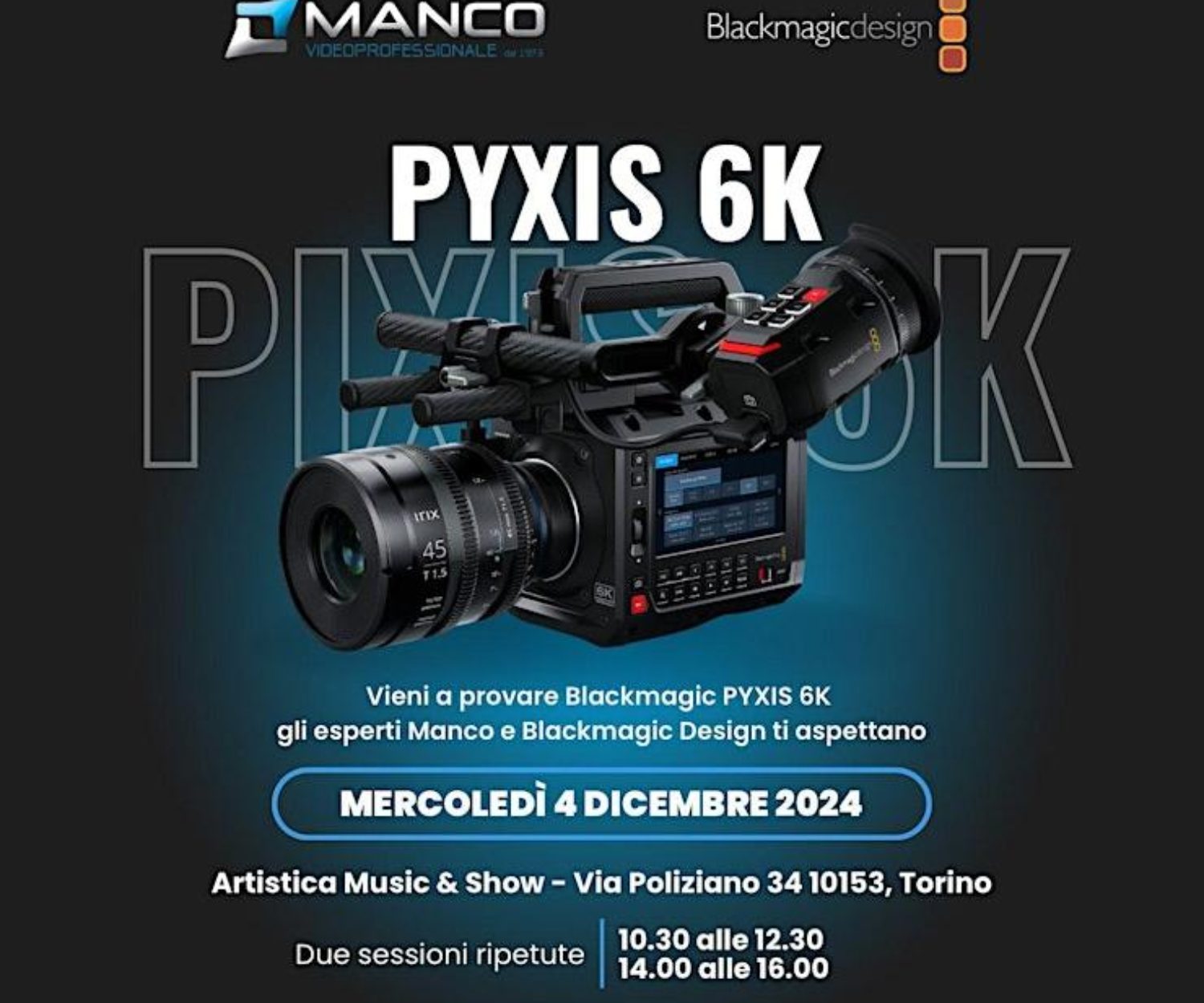 CINEMA, NEWS PUBBLICHE, PRODOTTI, VIDEO 25 Nov 2024 Open Day Blackmagic Design PYXIS 6K il 4 dicembre presso AMS|Multimedia a Torino AMS|Multimedia, Manco e Blackmagic Design vi aspettano per vedere e provare la nuova Blackmagic PYXIS. Andrea Gascone